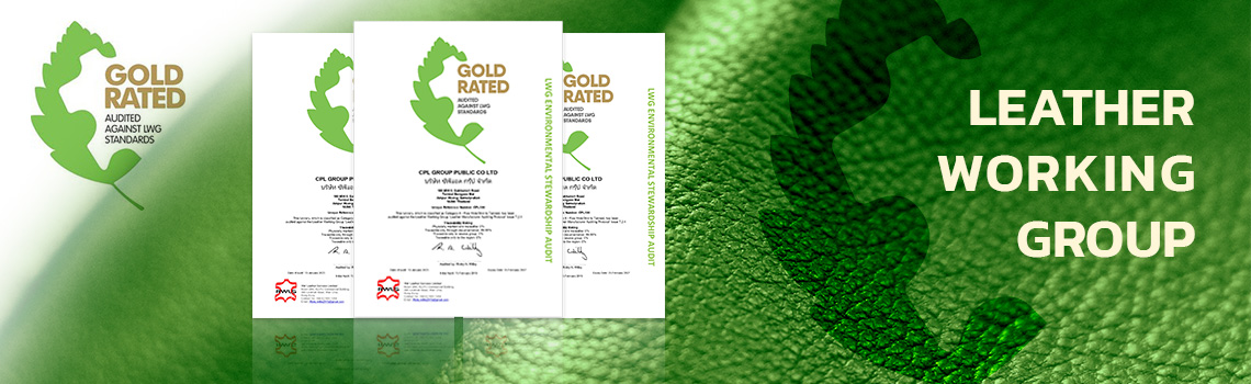 ได้รับมาตรฐาน “Leather Working Group (LWG) ระดับเหรียญทอง (Gold Rated)” LWG Bovine Category A Plant LWG Bovine Category D Plant LWG-Pigskin Category A Plant